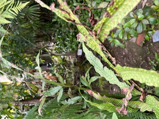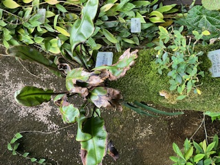 昨年2ケ月間の夜間ライトアップイベントが終わって、温室内の植物に大きな被害が出てきています。葉先が枯れてきたり、萎れてしまっているものが並んでいます。昨年10/18〜12/26、毎夜6時〜9時半、府立植物園観覧温室で ”LIGHT CYCLES KYOTO ”という光を使ったイベントが催されました。年が明けて温室を見に行くと、葉先が枯れたり萎れたりしているものが沢山ありました。強列な光線と大爆音を毎夜浴びせられ、植物たちにはさぞ過酷であったことでしょう。(ニュース「なからぎの森」23号参照)