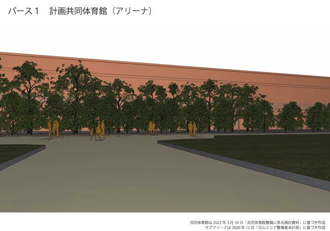 サブアリーナの位置は未定ですが、仮に隣に描いています。